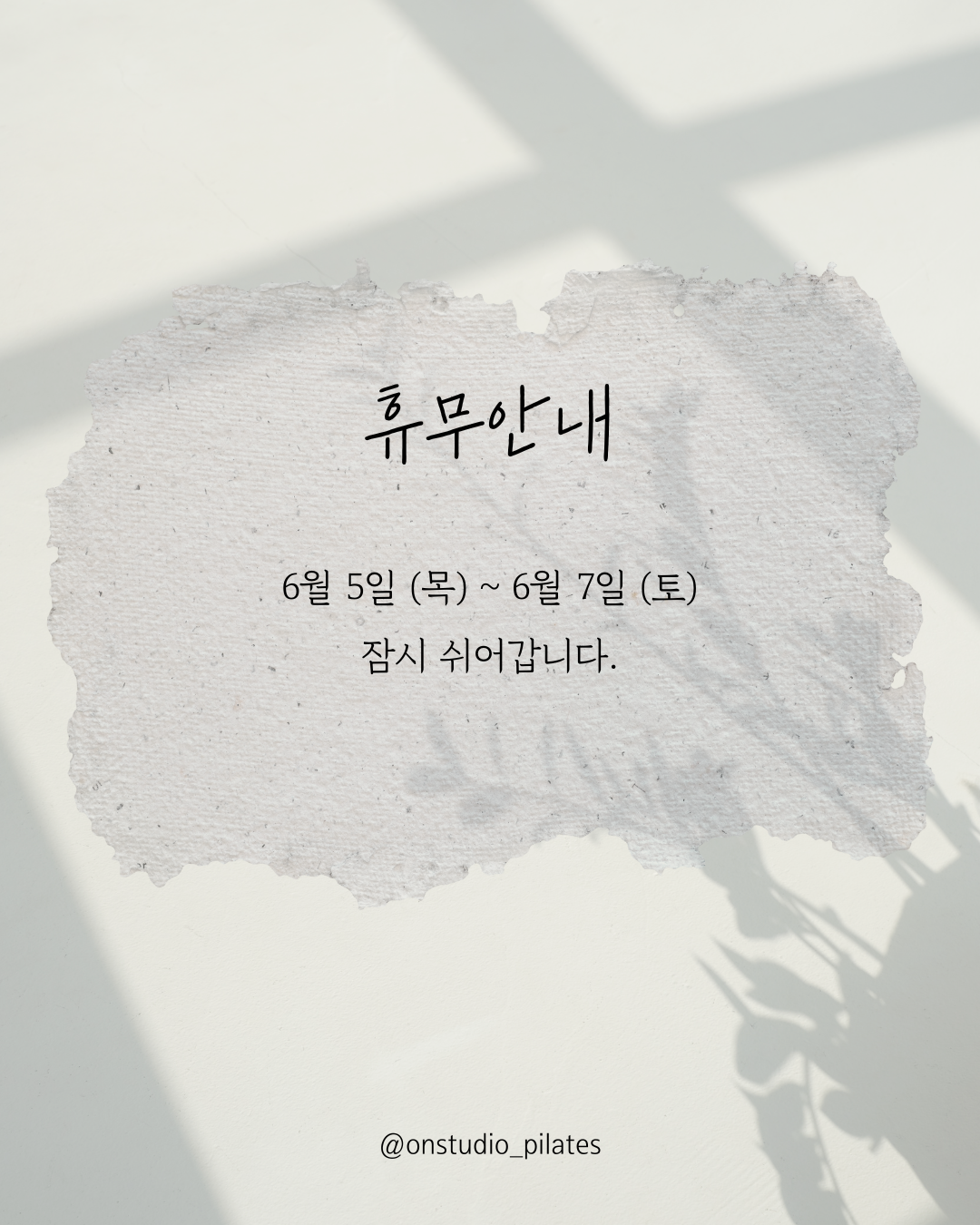 6월 첫 주 휴가일정으로 잠시 쉬어갑니다.좋은 에너지 충전 후 다시 찾아 뵙겠습니다.(6월3일은 정상수업합니다.)